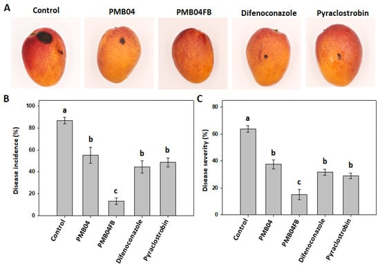 Postharvest Application of Bacillus amyloliquefaciens PMB04 Fermentation Broth Reduces Anthracnose Occurrence in Mango Fruit