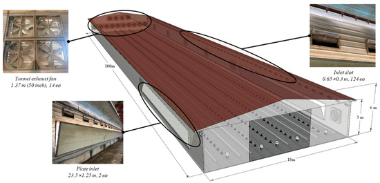 - Park, G.-Y.; Lee, I.-B.; Yeo, U.-H.; Ha, T.-H.; Kim, R.-W.; Lee, S.-Y. Ventilation rate formula for mechanically ventilated broiler houses considering aerodynamics and ventilation operating conditions. Biosyst. Eng. 2018, 175, 82–95. [Google Scholar] [CrossRef]