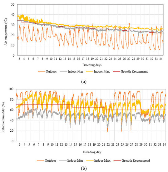 - Daskalov, P.I. Prediction of Temperature and Humidity in a Naturally Ventilated Pig Building. J. Agric. Eng. Res. 1997, 68, 329–339. [Google Scholar] [CrossRef]