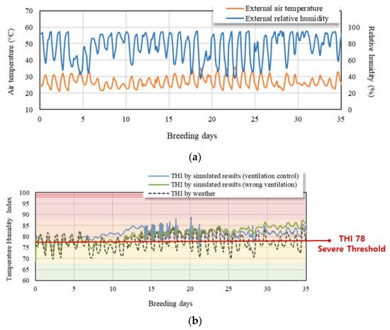 - Ha, J.-W.; Chang, H.-H.; Cha, K.-J.; Song, Y.-H. Verification of Thermal Environment and THI Prediction Equation of Hen House by Field Measurement and Model-based Simulation. J. Korean Inst. Archit. Sustain. Environ. Build. Syst. 2020, 14, 208–219. [Google Scholar]