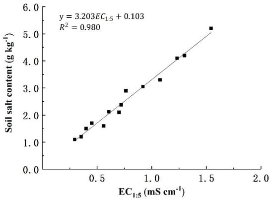 The soil salt content was calculated using the following empirical formula, which was developed in the local laboratory (Figure 2):
