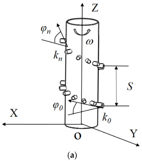 Figure 3, the spiral line was formed by the rotation of a point on the bus line with the Z-axis and the moving point was accelerated upward at the same time. The trajectory of the moving point (