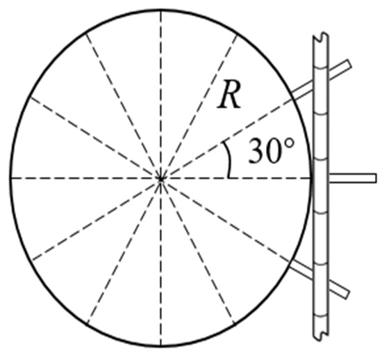 Figure 2c shows the late stage of the sugarcane lifting when the sugarcane only touched one tooth. Therefore, in the process of lifting the sugarcane, the spiral thrust of a cluster of spikes was gradually transformed into the upward-pushing force of the spikes on the sugarcane.