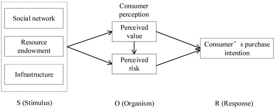 In this study, there are three external stimulus variables: social network, resource endowment, and infrastructure, two mediating variables are consumers’ perceived values and perceived risks, and one response variable is consumers’ purchase intentions. Therefore, this is a multiple-to-multiple study and the simple regression model cannot be used, so we resort to structural equation modeling for a more comprehensive study.