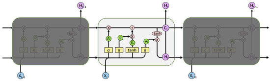 The LSTM network introduces a gating mechanism to control the path of information transmission. The three “gates” are the input gate , the forget gate , and the output gate . The functions of these three gates are as follows: