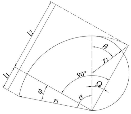 The working process of the previously described commutation gear set 2 reveals that gear 1 pushes the sliding rack upward by meshing with sliding rack 1. According to Formula (11), in the meshing motion of residual gear 1 and gear 2, the rising distance of the vertical rack is determined by the rotation angle of gear 2. The distance determines the rotation angle of the Archimedes spiral slide, which when it is combined with Formula (10), determines the height of the dislocation device. Consequently, the tooth distribution of the residual gear is essential for achieving the previously mentioned periodic motion.