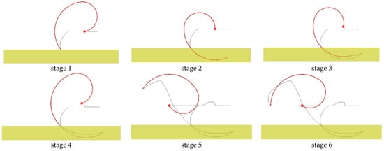 Figure 16 depicts the motion trajectories of the six stages of the arc-shaped clamping rods in Formula (12).