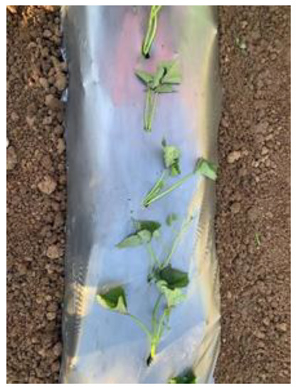 - Ma, Z.; Liu, L.; Yao, H.; Zhang, S. Effect of Different Film Mulching Methods on Growth and Development of Sweet Potato. Acta Agric. Boreali-Occident. Sin. 2012, 21, 103–107. [Google Scholar]