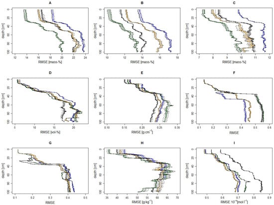 Current approaches in pedometric modeling to generate nationwide soil information predominantly address the prediction of individual soil properties. Žížala et al. and Gebauer et al. [24,25] provide recent 2D applications, Malone and Searle and Reddy et al. [26,27] 2.5D applications, and Padarian et al. and Ma et al. [28,29] 3D applications. However, the separate modeling of individual soil properties and their respective joint consideration as input to agricultural process models may result in constructed soil profile information that does not occur in reality and may be unrealistic according to the underlying pedogenetic processes and dependencies between the properties. Ließ et al. [4] provide a promising alternative for the joint modeling of multiple soil properties in 3D. The resulting data product represents the multivariate 3D soil parameter space of the nationwide agricultural landscape of Germany in terms of spatially allocated SPUs, each being described by a multivariate parameter distribution along the depth profile from 0 to 100 cm. It includes depth- and property-wise uncertainty estimates.