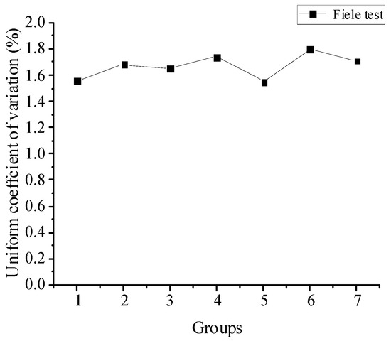 The fertilizer quality collected on the ground was repeatedly measured, and the coefficient of variation was calculated. The statistical results of the organic fertilizer discharge device are shown in Figure 13.