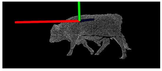 Construction of an axis-aligned box bounding the animal in the point cloud. The algorithm is implemented in PCL, and it is equivalent to taking minimum/maximum values at each coordinate of the point cloud;