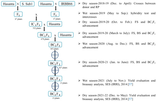 3. Iftekharuddaula, K.M.; Ahmed, H.U.; Ghosal, S.; Moni, Z.R.; Amin, A.; Ali, M.S. Development of a new submergence tolerant rice variety for Bangladesh using marker-assisted backcrossing. Rice Sci. 2015, 22, 15–26. [Google Scholar] [CrossRef]