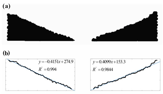 Image of (a) repose angle simulation results and (b) processing diagram.