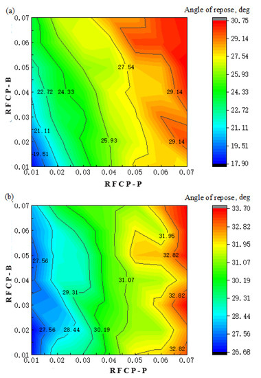 - A comprehensive test of the repose angle demonstrated that the RFCP-P had a significant effect on the angle of repose, whereas the RFCP-B did not have a significant effect on the angle of repose.