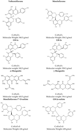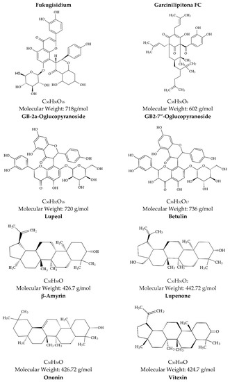 - Ribeiro, D.; Russo, H.; Fraige, K.; Zeraik, M.; Nogueira, C.; da Silva, P.; Codo, A.; Calixto, G.; de Medeiros, A.; Chorilli, M.; et al. Bioactive Bioflavonoids from Platonia insignis (Bacuri) Residues as Added Value Compounds. J. Braz. Chem. Soc. 2021, 32, 786–799. [Google Scholar] [CrossRef]