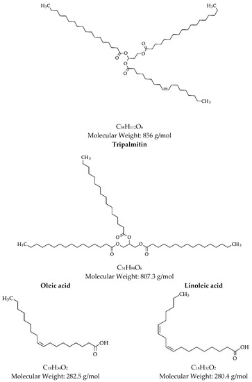 The seed oil has 50–55% tripalmitin in its constitution, allied to the fatty acid content [32]. This triglyceride, which originated from the acylation of the three hydroxyl groups of glycerol by palmitic acid, has humectant characteristics, providing high penetration into the skin with wound healing properties [34,35]. According to Pesce (2009) [36], the extraction of this oil presents many difficulties, mainly related to extraction methods due to the high-fat percentage. However, currently, there is an expectation of using processes in which it is possible to obtain a resin-free fat with a lighter color and more attractive sensory characteristics, which can be marketed at a higher price than the dark fat obtained by the extraction with presses.