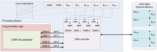 Figure 6. Execution of the instruction on the PS and data exchange between the external memory and CNN accelerator on the PL.
