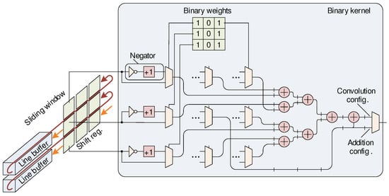 Figure 8. The binary kernel with a 3 × 3 sliding window for convolution/addition core configuration.