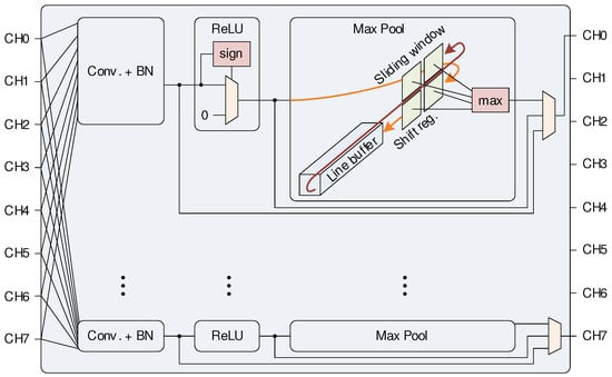 Figure 10. A core with 8 input and 8 output channels for convolution, batch normalization, ReLU, and max pooling computation.