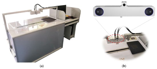 Wheat grain 3D point-cloud acquisition platform. (a) Overview of the platform; (b) binocular camera.