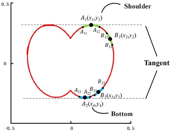 As the waist curvature of apples with different sizes is different, it will not affect the operation of the picker with this structure, so the growth posture of apples in this section is only analyzed for the curvature of the shoulders and bottom of apples, as shown in Figure 11.