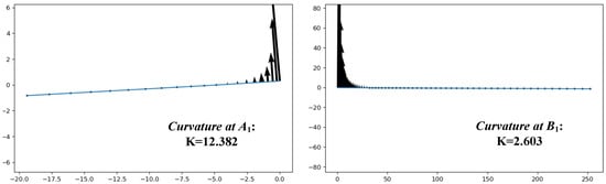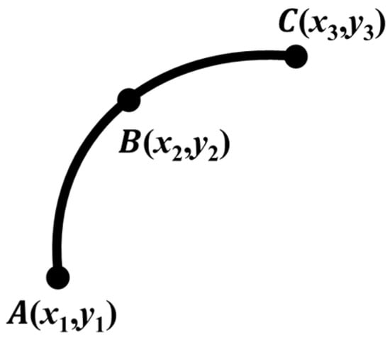 The method of determining the curvature of unknown curve generally takes the curvature of conic determined by three points as the estimated curvature, as shown in Figure 12, where the curvature at the point is the curvature estimation of the curve determined by these three points.