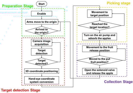 We expect to develop apple-picking robots with solar panels so that the robots can operate continuously in the orchard for 24 h, further improving the operational efficiency of the apple-picking robots.