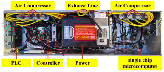 In the apple-picking robot in this study, the motor models of the corresponding axes of the double arms are the same and the power of the three motors corresponding to one robot arm is 0.75 kw, 0.2 kw and 0.4 kw, the power of the air pump is 0.024 kw and the capacity of the power supply is 8.4 kw. The single fruit picking speed of the robot is 8 s/each and the average single-axis movement time is 5 s when picking a single fruit, so the robot can work continuously for 12.199 h. That is, the apple-picking robot consumes 8.4 kw of electricity for 12.199 h of continuous operation.