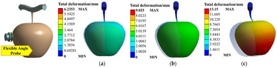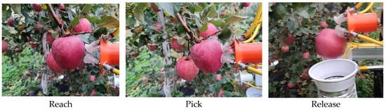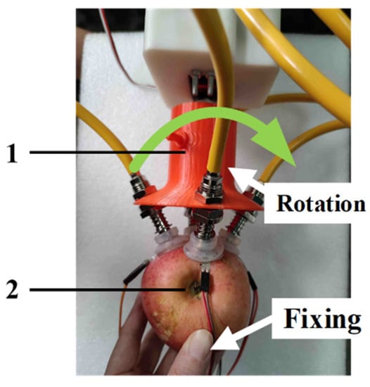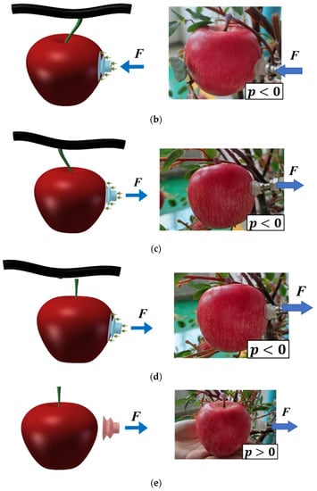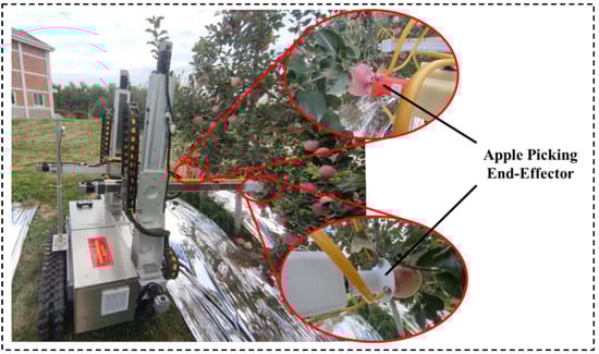Apple picking is the most labor-intensive stage in the whole production cycle, accounting for about 40% of the time required to complete the whole process and 33–50% of the total cost [1,2]. Automatic equipment or robots can effectively improve the picking efficiency and reduce the cost [3,4,5]. In the process of automatic picking, the quality of picking directly affects the storage, processing and sales of fruits and finally affects the economic benefits. Therefore, it is one of the key links to realize automatic apple picking by rationally optimizing the design of the end effector and realizing nondestructive fruit picking [6,7,8].