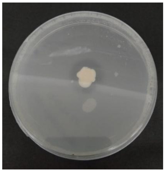 According to Savardi et al. [48], there are three types of hemolysis: alpha (α) hemolysis, beta (β) hemolysis, and gamma (γ) hemolysis. We identified the reaction of S. yanoikuyae SJTF8 bacteria on the blood agar as gamma hemolysis. We identified the gamma (γ) hemolysis by the absence of hemolysis, whereby no blood agar was absorbed by the bacteria (Figure 2). The bacterium did not break down the blood cells, which indicates that it is safe for handling and applicable for agricultural use.