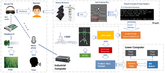 The human–robot interactive technique (HRI) is used to regularize the phenotyping schedule. Breeding experts remotely control the robot platform to perform interactive phenotyping operations with the HRI system. The HRI framework is shown in Figure 3.