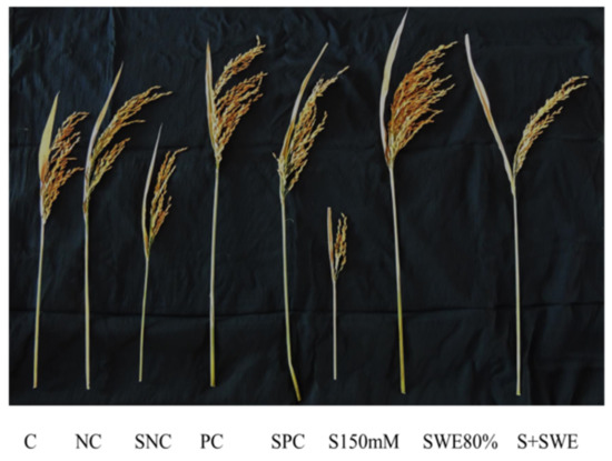 Effect of SWEs and salt on panicle length (cm).