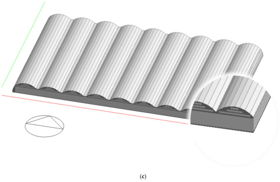 Simulation models of three types of greenhouses. (a) Crossed multi-arch greenhouse; (b) Multi-span round-arch greenhouse with an in-greenhouse ventilation channel; (c) Multi-span round-arch greenhouse without an in-greenhouse ventilation channel.