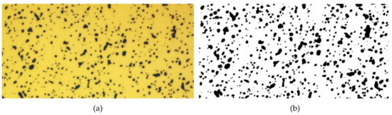 Image processing for WSP samples. (a) Raw and (b) processed images of a WSP with droplets. Note: Blue areas in raw image and black points in processed image are the traces after the droplets were deposited on WSP.