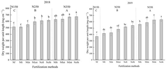 - Bian, D.H.; Liu, M.Z.; Niu, H.F.; Wei, Z.B.; Du, X.; Cui, Y.H. Effects of nitrogen application times on stem traits and lodging of summer maize (Zea mays L.) in the Huang-Huai-Hai Plain. Sci. Agric. Sin. 2017, 50, 2294–2304. [Google Scholar]