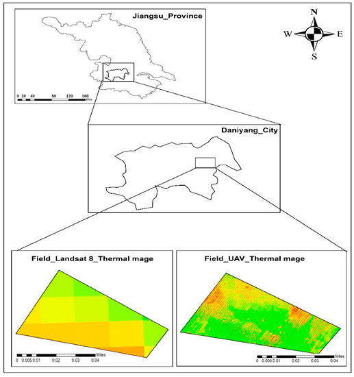 In this study, an attempt was made to identify LST using the thermal features of the land surface from UAVs and Landsat 8 satellite in an area of tea plantation fields that were located in Danyang City, Jiangsu Province, China. In addition, we compared the characteristics of UAV TIR LST data for precise thermal environmental analysis with satellite data (Landsat 8 LST). The objectives of this study include the examination of the accuracy of the LST that was acquired from the satellite data Landsat 8 and UAV TIR cameras and then compare both the simulations with the ground truthing in situ LST data.