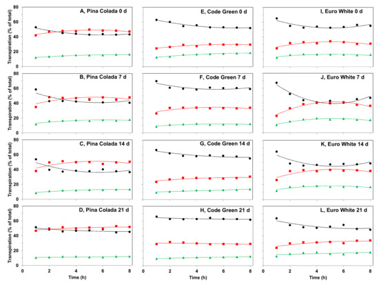 - Fanourakis, D.; Papadopoulou, E.; Valla, A.; Tzanakakis, V.A.; Nektarios, P.A. Partitioning of transpiration to cut flower organs and its mediating role on vase life response to dry handling: A case study in chrysanthemum. Postharvest Biol. Technol. 2021, 181, 111636. [Google Scholar] [CrossRef]