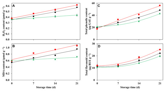 3.4.4. Effect of Storage Period on Leaf Hydrogen Peroxide Content and Lipid Peroxidation