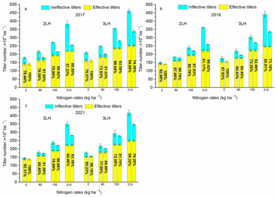3.3. Effect of N Rate on Tiller and Panicle Development