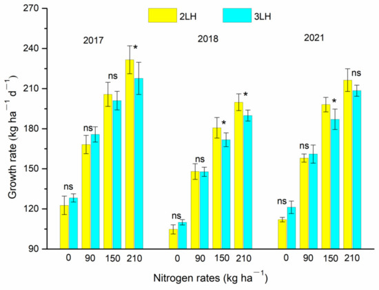 3.4. Effect of N Rate on Growth Rate from Jointing to Heading Stage