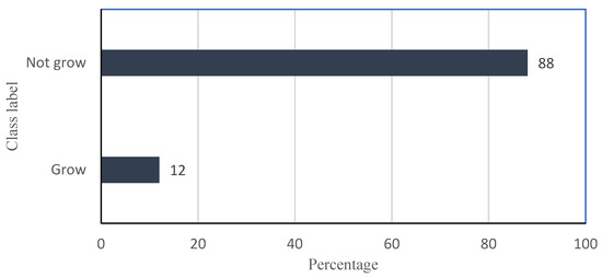 Before the predictive model is built, two operations are carried out in preprocessing step. Firstly, the Label encoding technique is used to convert the categorical features into numerical ones. Secondly, the StandardScalar method improves the predictive model performance by removing each independent variable’s mean and adjusting them to unit variance based on the formula introduced in Equation (10). Based on Figure 5, one of the classes has less sample (12%); therefore, the SMOTE technique is utilized to solve the imbalanced dataset problem.