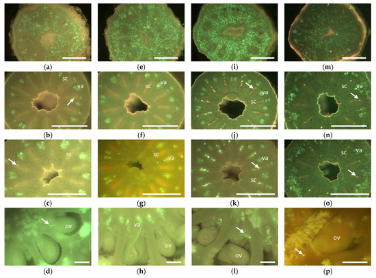 - Yamasaki, A.; Kitajima, A.; Ohara, N.; Tanaka, M.; Hasegawa, K. Histological study of expression of seedlessness in Citrus kinokuni ‘Mukaku Kishu’ and its progenies. J. Am. Soc. Hortic. Sci. 2007, 132, 869–875. [Google Scholar] [CrossRef]