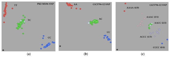 - Cuenca, J.; Aleza, P.; Navarro, L.; Ollitrault, P. Assignment of SNP allelic configuration in polyploids using competitive allele-specific PCR: Application to citrus triploid progeny. Ann. Bot. 2013, 111, 731–742. [Google Scholar] [CrossRef][Green Version]