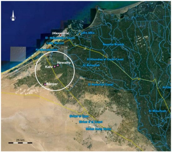 A map of the three investigated study areas south-west Nile Delta, Egypt.
