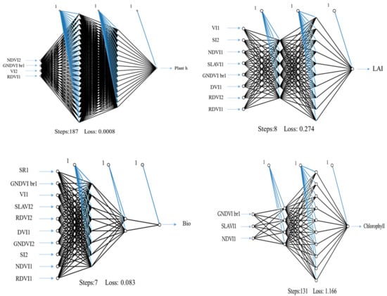 Neural network topology with the best-combined V-SRIs extracted from in situ spectrometry and satellite imagery.