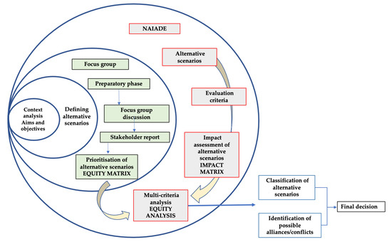 - the construction of the impact and equity matrices, which represent, as is well known, the basis for the use of the NAIADE discrete assessment model [68];