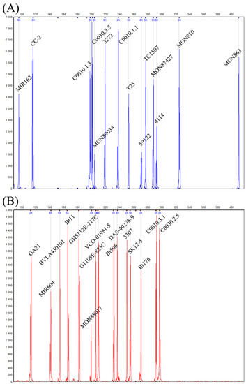 The following supporting information can be downloaded at: https://www.mdpi.com/article/10.3390/agriculture12030413/s1, Table S1: Primer information; Table S2: Information on amplified fragments based on capillary electrophoresis.