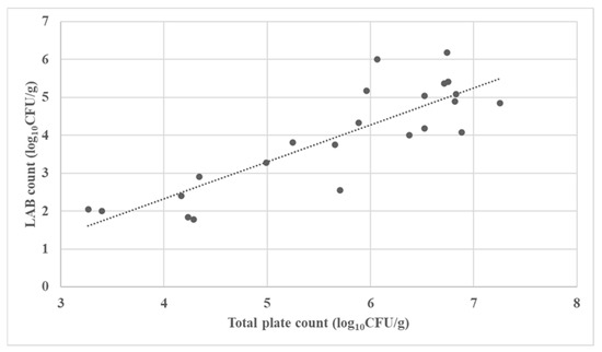 Correlation of total plate count and LAB counts in the final stage of the fermented forages.