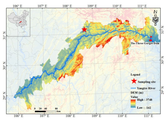 The location of sampling sites and DEM in the WFLZ of the TGR.