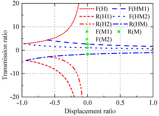 The above parameters are substituted into each transmission ratio to obtain the curve of transmission ratio about displacement ratio shown in Figure 2.
